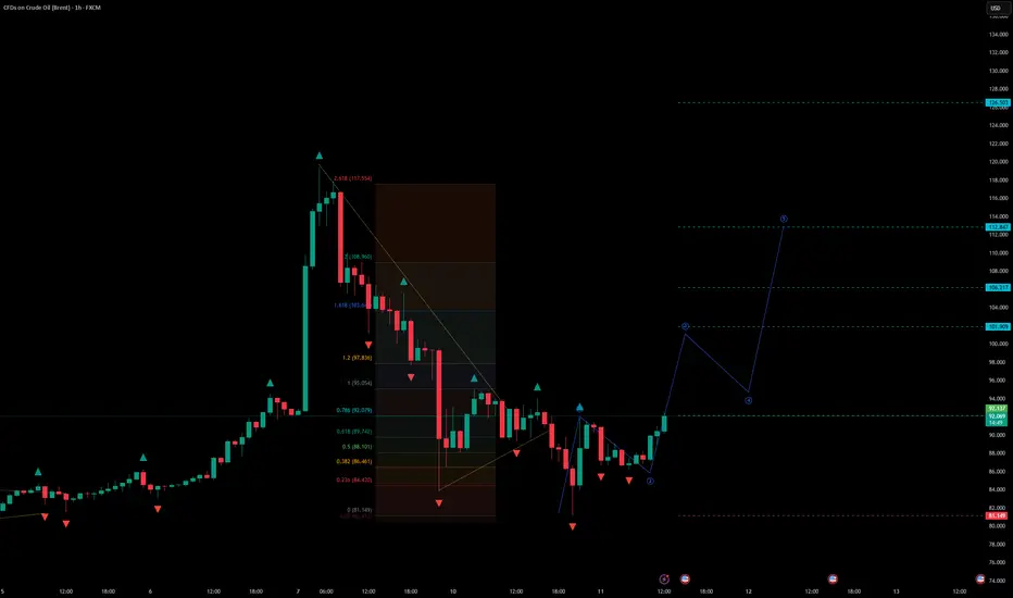 Brent (UKOIL) — H1 Formation of a Potential Wave 3 + Trendline Break (Bullish Continuation)