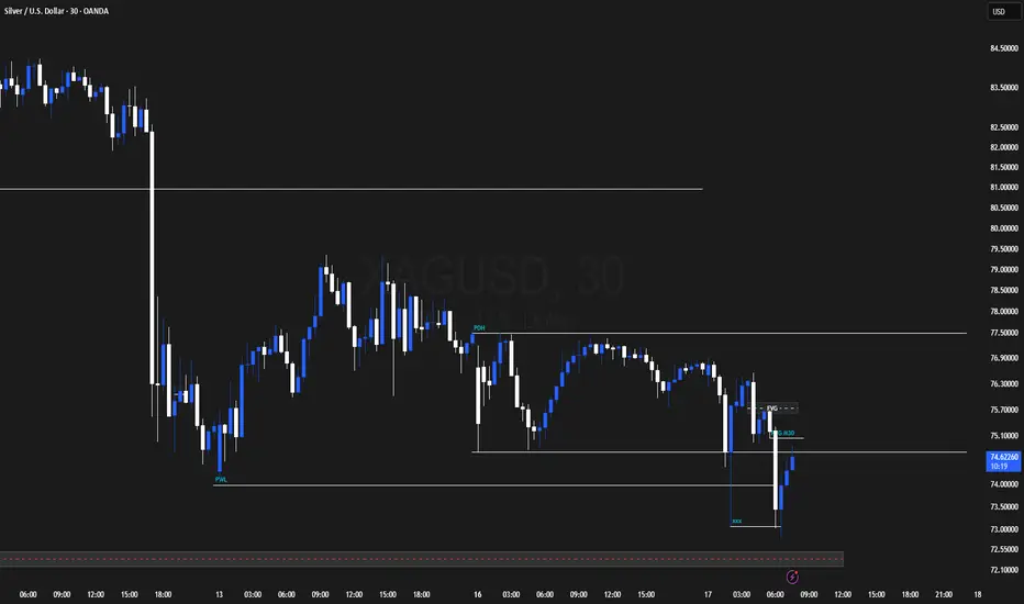 Silver remains in a short-term bearish trend. For now, I would only consider shifting that bias if we see a strong, impulsive reaction with clear-bodied candles from a key Point of Interest (POI), signaling potential displacement and a change in short-term order flow.