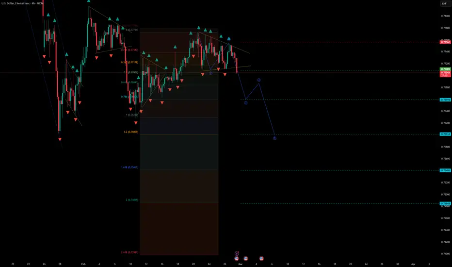 The bearish scenario remains valid below 0.77562, with downside targets at 0.76594 → 0.76014 → 0.75406 → 0.74849.